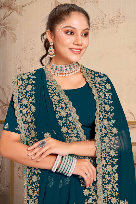 Dusty Pista Green Colour Georgette Saree VSSD1090959