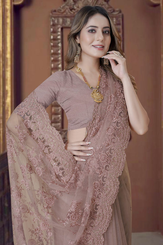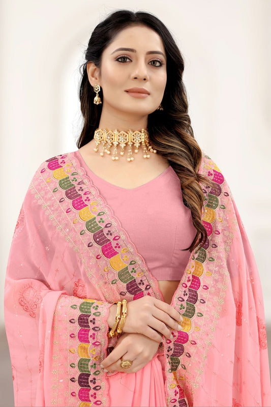 Dusty Peach Colour Georgette Saree VSSD1090924