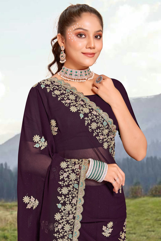 Dusty Grey Colour Georgette Saree VSSD1090925