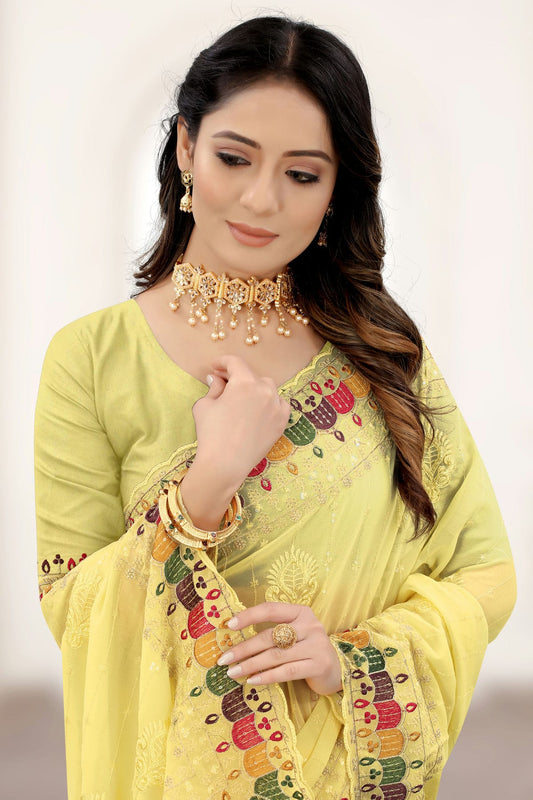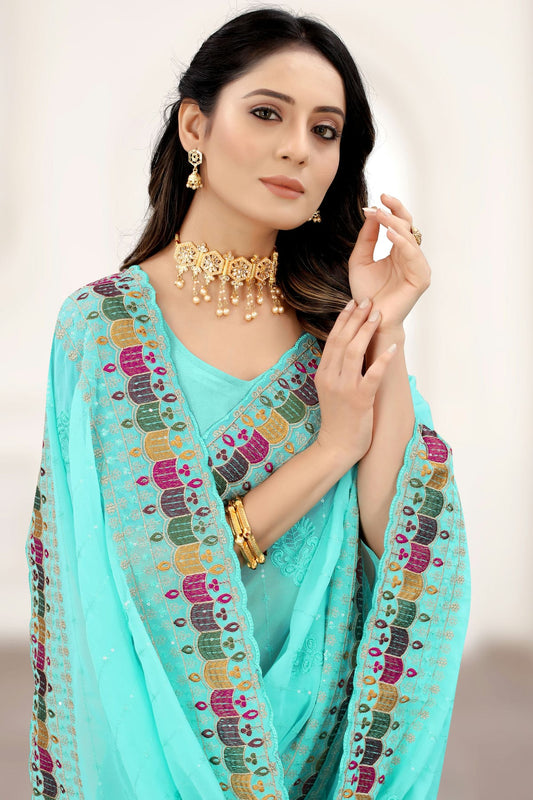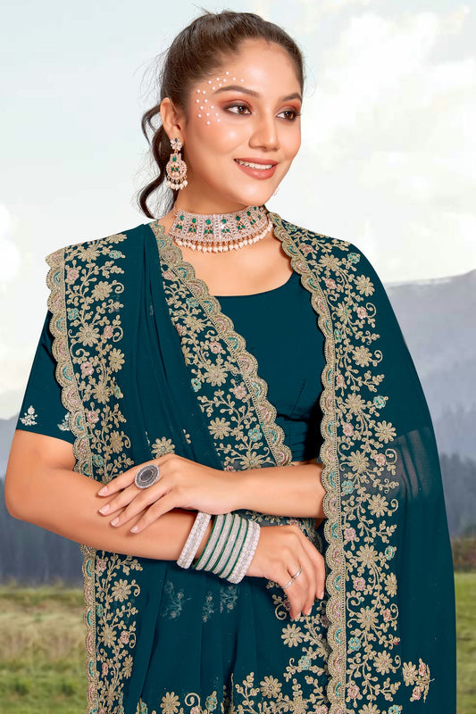 Dusty Pista Green Colour Georgette Saree VSSD1090926