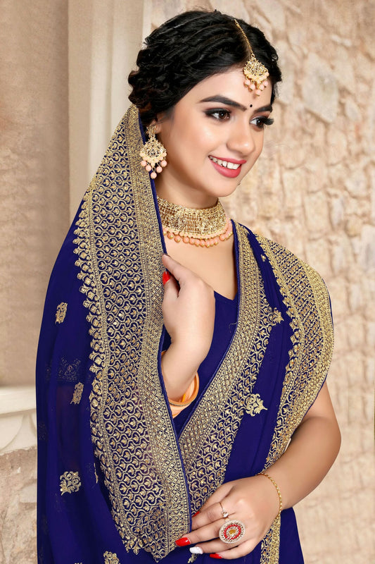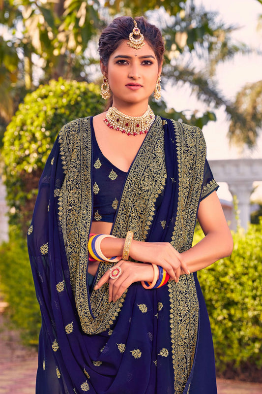 Navy Blue Colour Georgette Saree VSSD1090800