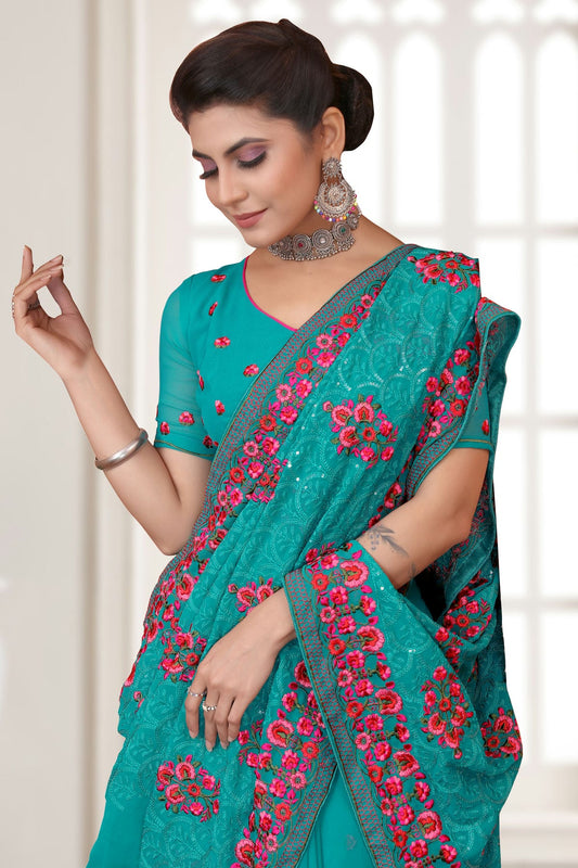 Teal Colour Georgette Saree VSSD1090795
