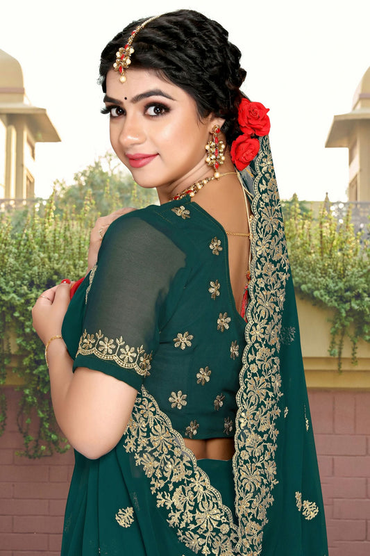 Teal Colour Georgette Saree VSSD1090811