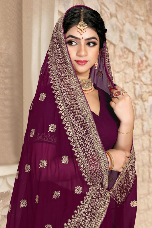 Wine Colour Georgette Saree VSSD1090807