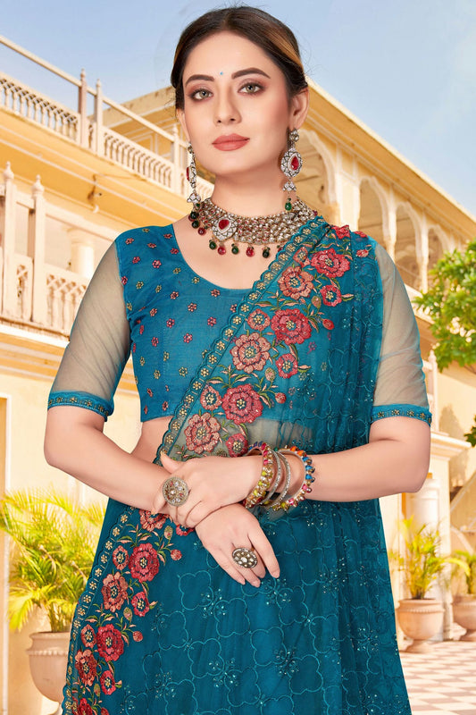 Teal Colour Net Saree VSSD1090767
