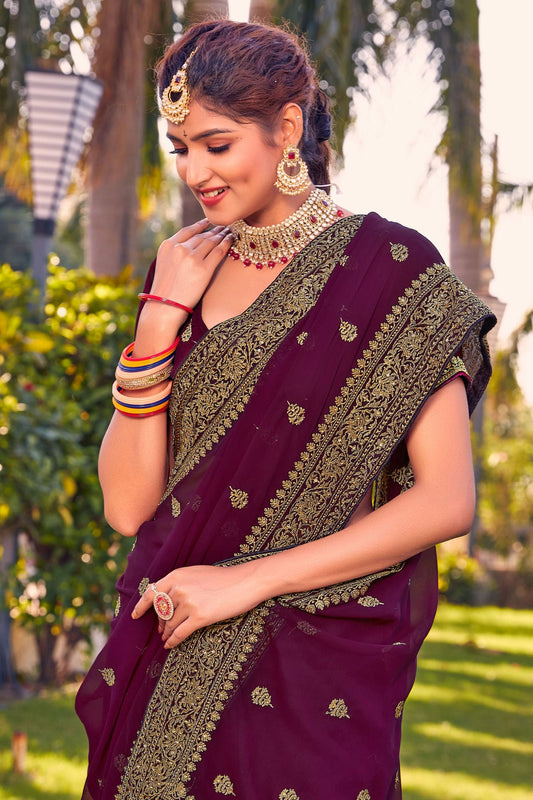 Wine Colour Georgette Saree VSSD1090791