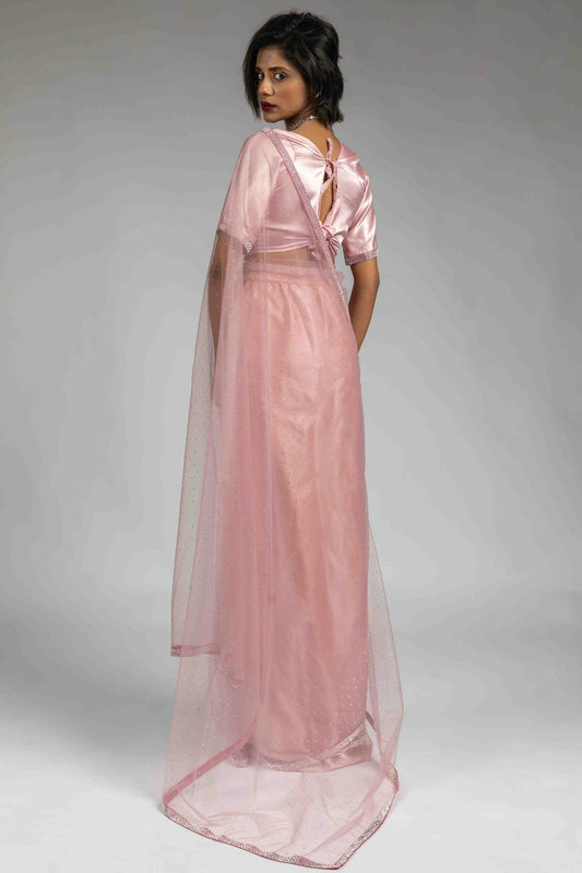 Baby Pink Colour Net Ready To Wear Saree VSSD1122053