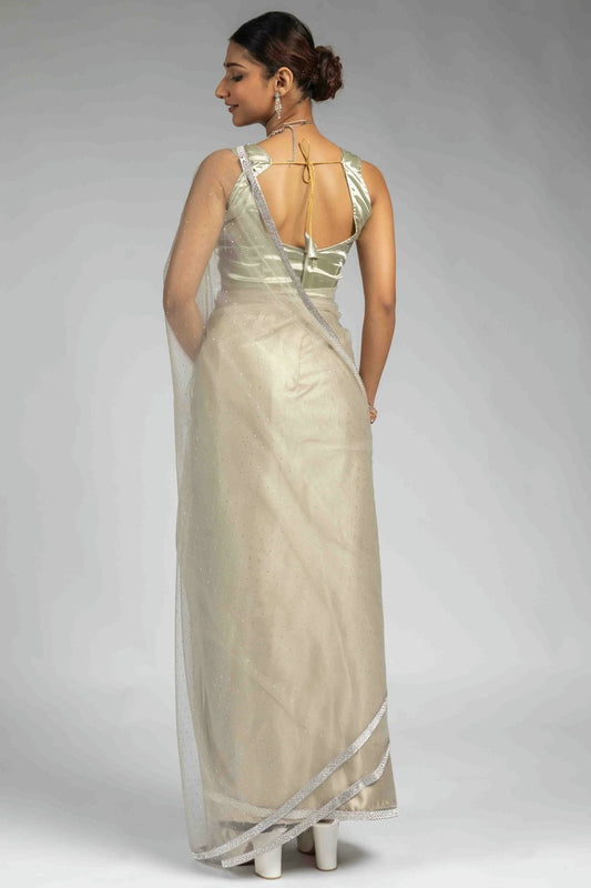 Light Green Colour Fendi Satin Ready To Wear Saree VSSD1122013