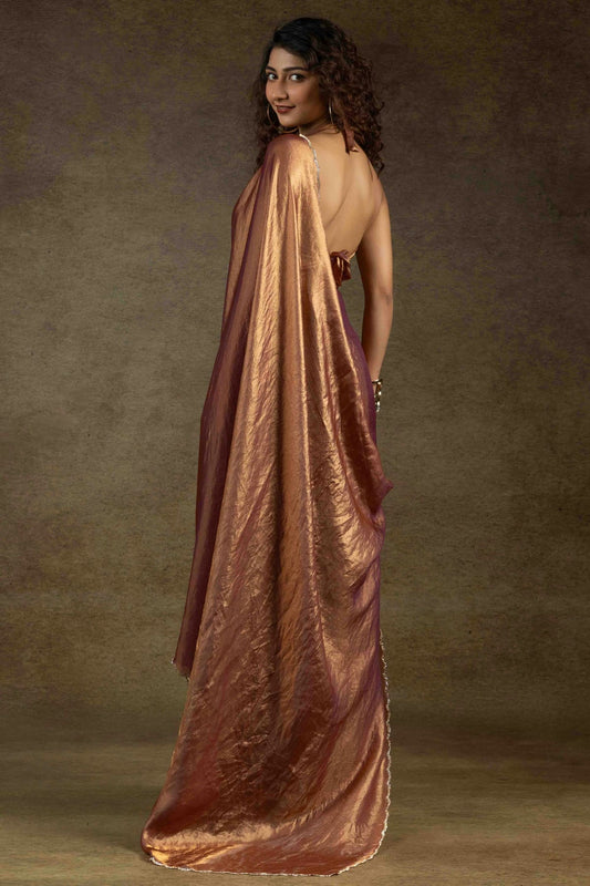Dusty Pink Colour Tissue Silk Ready To Wear Saree VSSD1122052