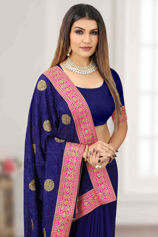 Navy Blue Colour Chiffon Designer Saree VSSD1121202