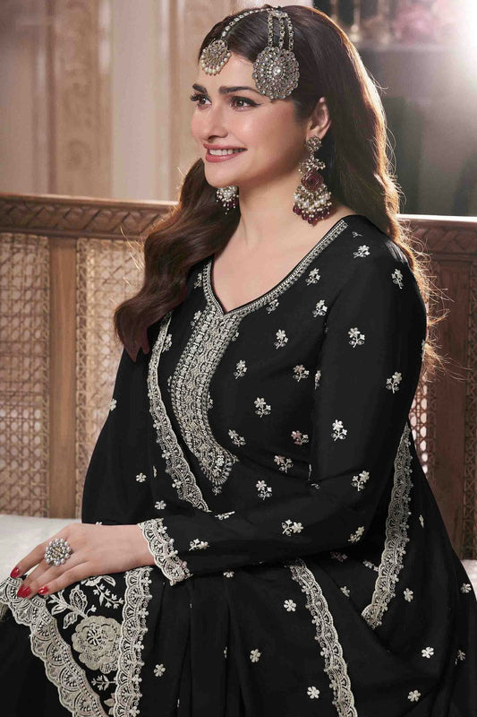 Black Colour Chinon Palazzo Pant Suit VSSM1140920