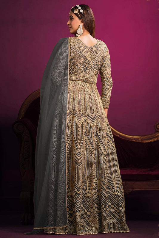 Grey Colour Semi Stitched Net Anarkali Suit VSSM1050444