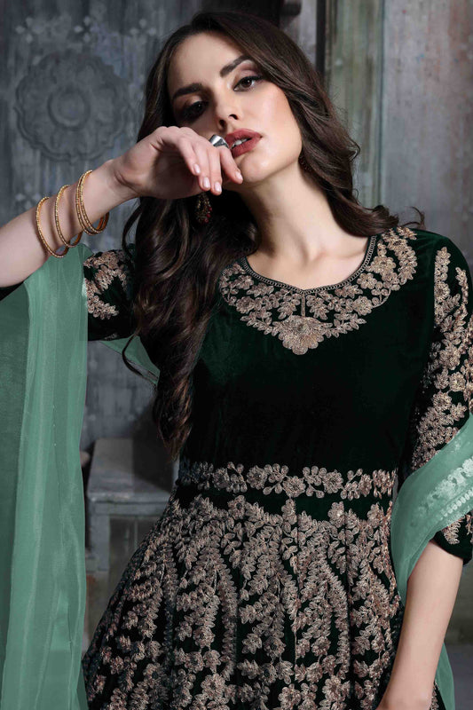 Green Colour 9000 Velvet Semi Stitched Anarkali Suit VSSM1050270
