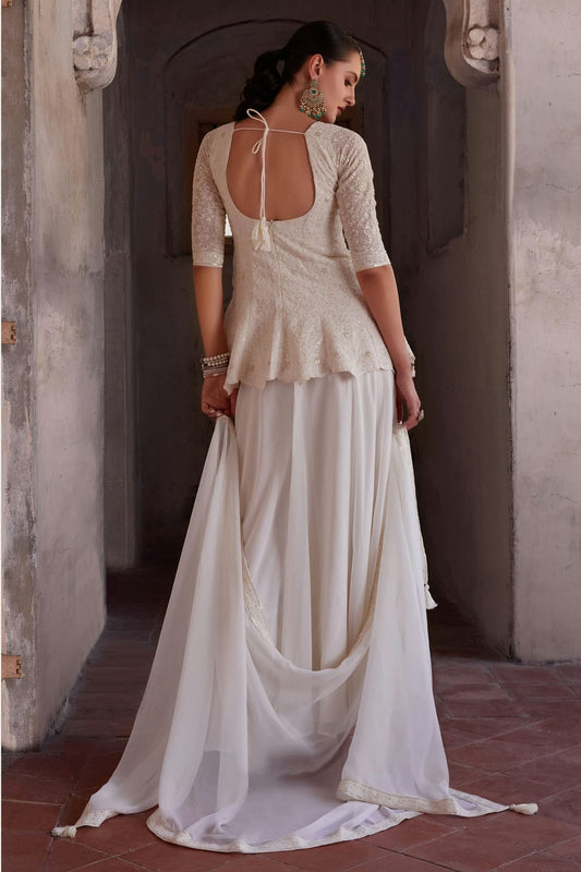 Cream Colour Satin Sharara Suit VSSS1140017