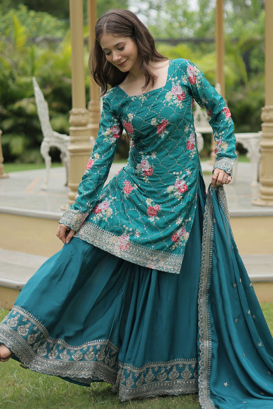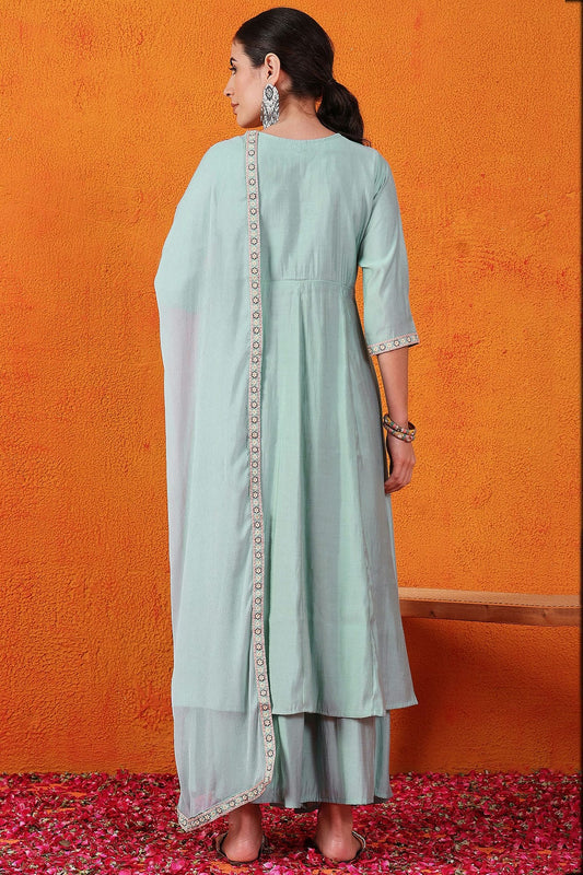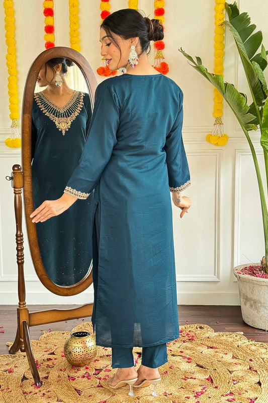 Teal Colour Viscose Chanderi Stitched Salwar Suit VSSS1111401