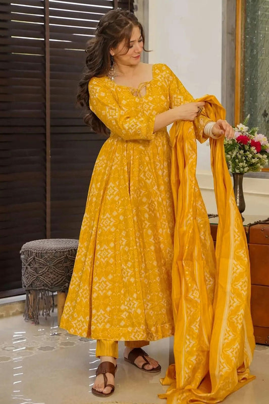 Yellow Colour Muslin Stitched Salwar Suit VSSS1111433