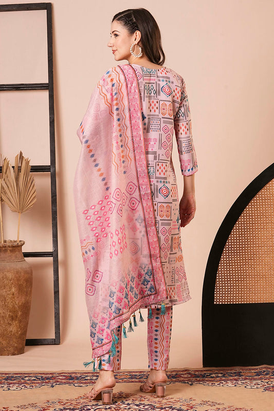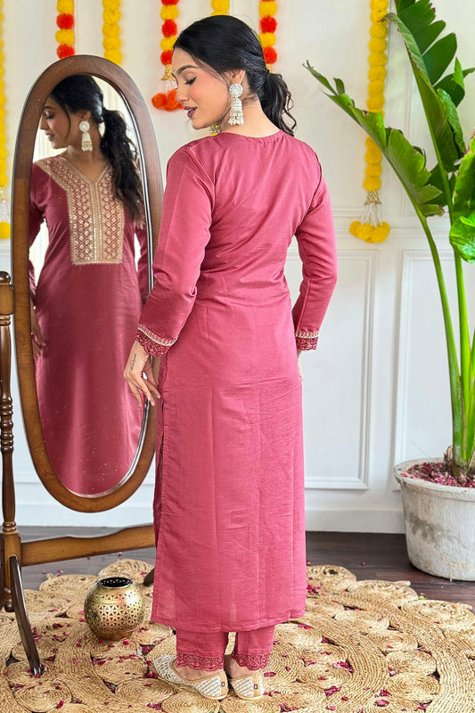 Pink Colour Viscose Chanderi Stitched Salwar Suit VSSS1111402