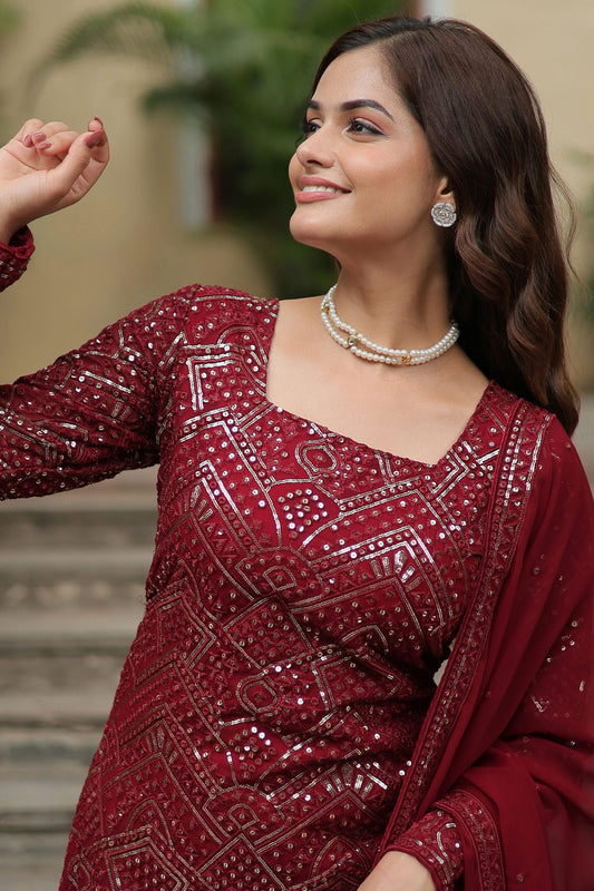 Maroon Colour Faux Georgette Stitched Salwar Suit VSSS1111448