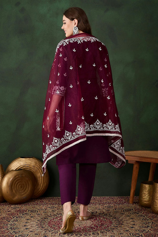 Burgundy Colour Viscose Chanderi Stitched Salwar Suit VSSS1111400
