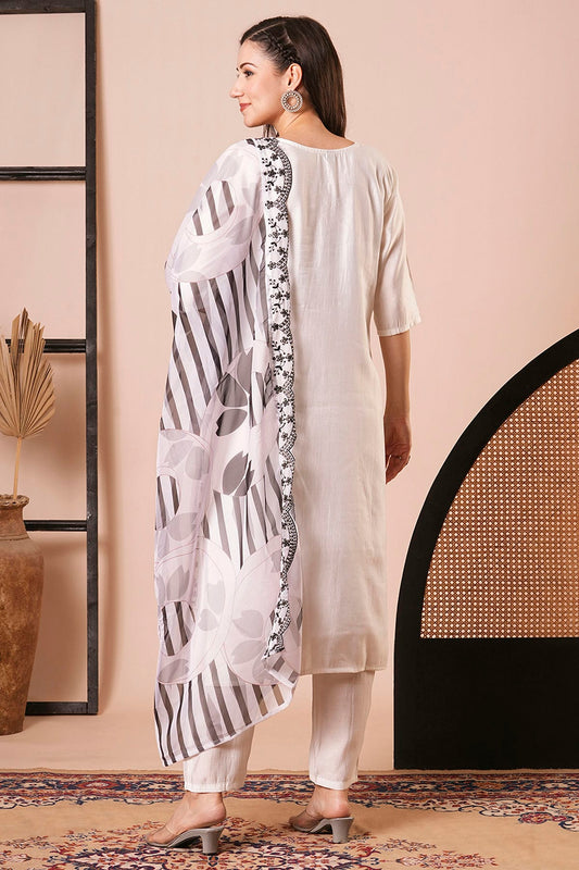 White Colour PV Chanderi Stitched Salwar Suit VSSS1111525