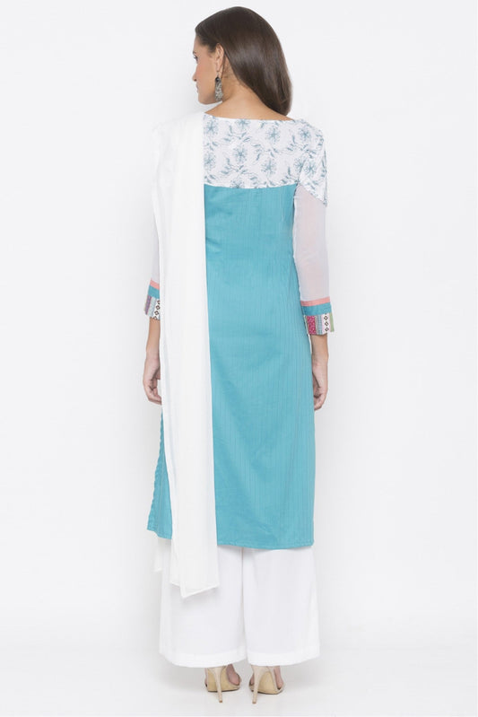 Blue Colour Plus Size Stitched Cotton Embroidery Palazzo Pant Suit VSSS1070258