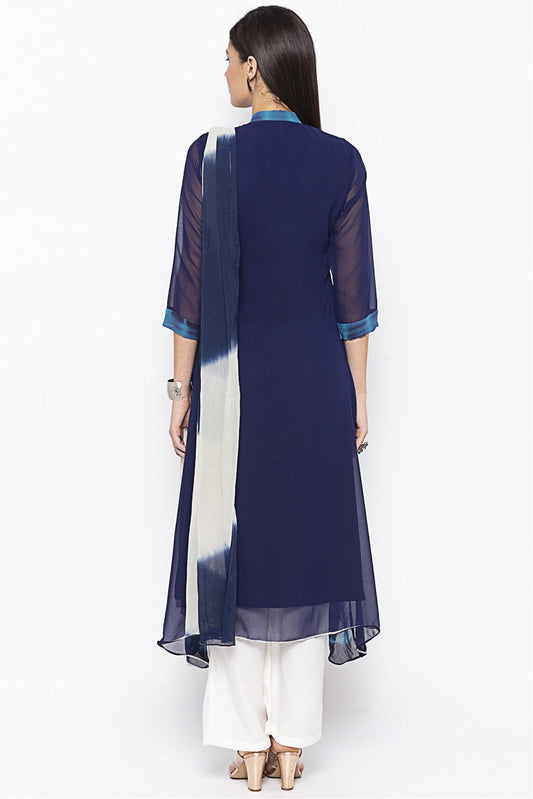 Blue Colour Plus Size Stitched Georgette Embroidery Pant Style Suit VSSS1070240