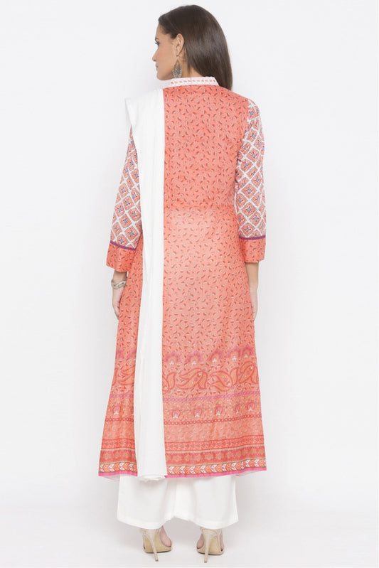 Peach Colour Plus Size Stitched Cotton Embroidery Palazzo Pant Suit VSSS1070263