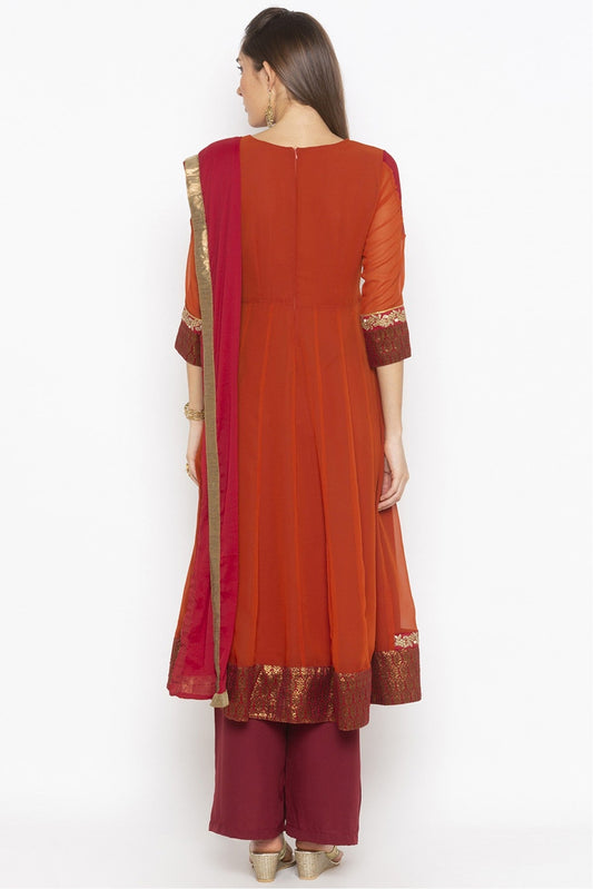 Rust Colour Plus Size Stitched Georgette Embroidery Palazzo Pant Suit VSSS1070249