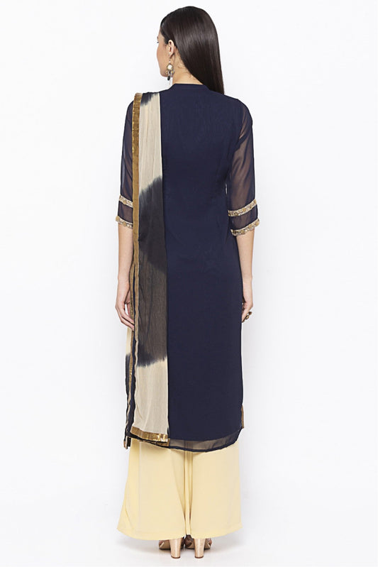 Blue Colour Plus Size Stitched Georgette Embroidery Palazzo Pant Suit VSSS1070246