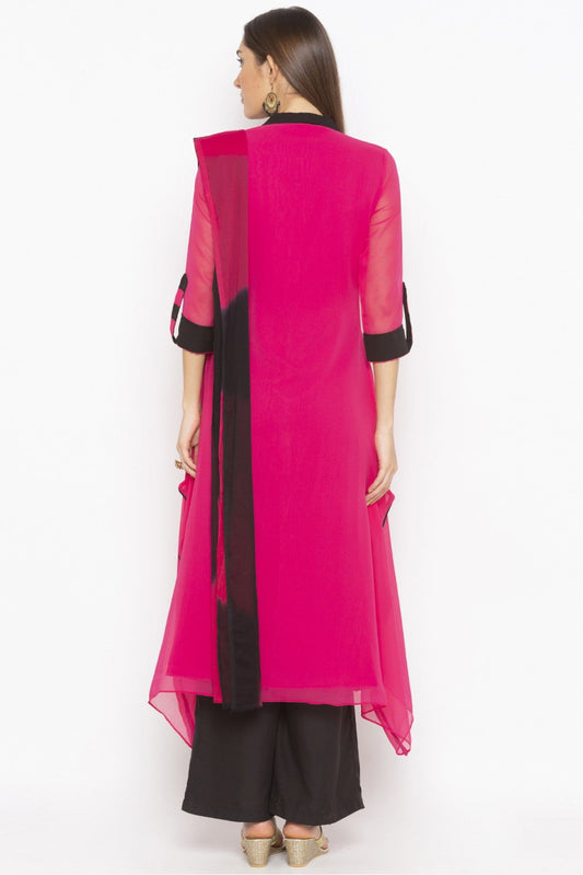 Pink Colour Plus Size Stitched Georgette Embroidery Palazzo Pant Suit VSSS1070267