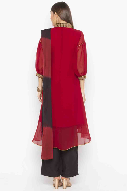 Black and Red Colour Plus Size Georgette Embroidery Pant Style Suit VSSS1070311