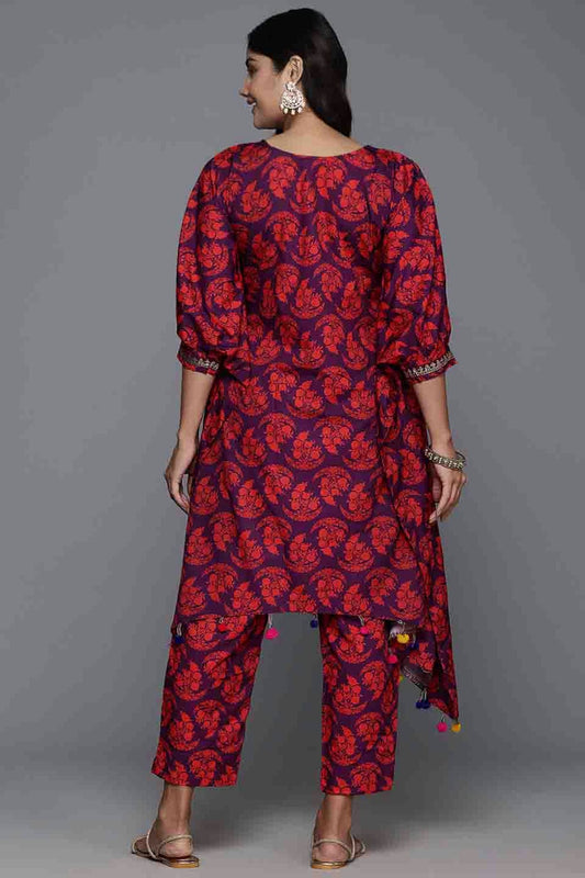 Wine Colour Vichitra Silk Stitched Pant Style Suit VSSS1113783
