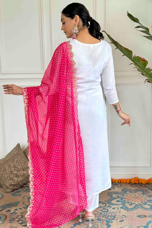 White Colour Jacquard Silk Woven and Hand Work Pant Style Suit VSSS1113688