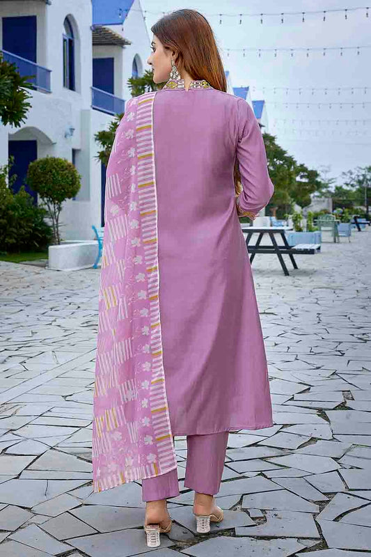 Light Purple Colour Muslin Stitched Suit VSSS1112970
