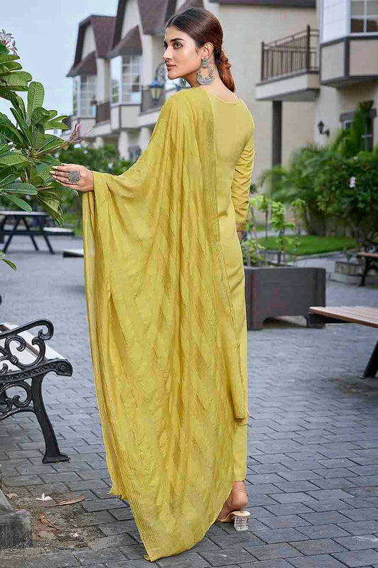 Mustard Colour Viscose Stitched Suit VSSS1112995