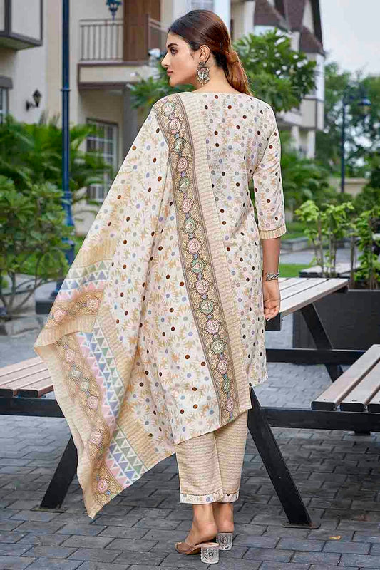 White Colour Viscose Chanderi Stitched Suit VSSS1112989
