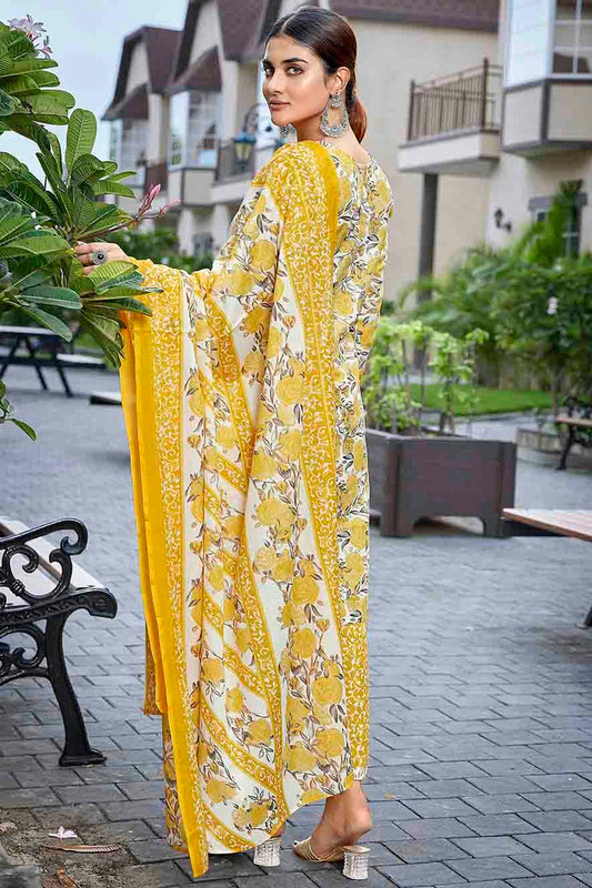 Yellow Colour Cotton Blend Stitched Suit VSSS1112978