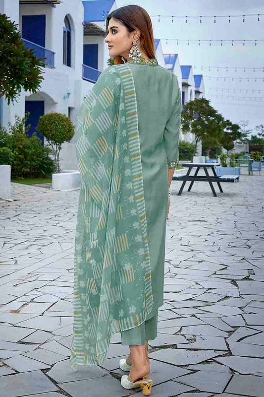 Light Green Colour Muslin Stitched Suit VSSS1112971
