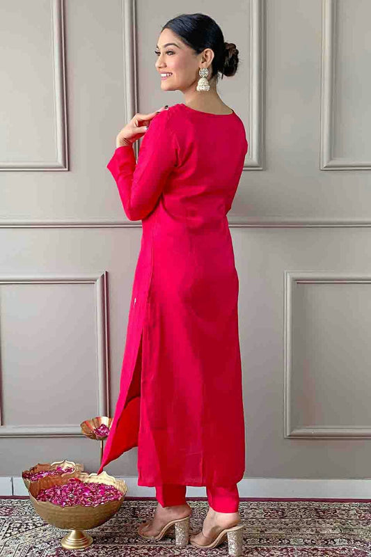 Red Colour Chanderi Stitched Suit VSSS1112920