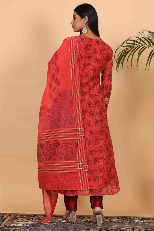 Red Colour Chanderi Stitched Suit VSSS1112917