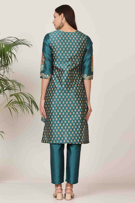Sea Green Colour Chanderi Stitched Suit VSSS1112922