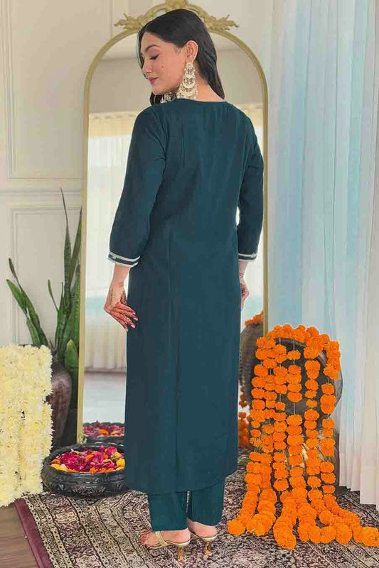 Teal Colour Viscose Stitched Suit VSSS1112991
