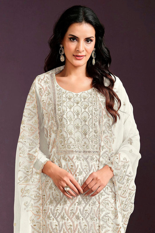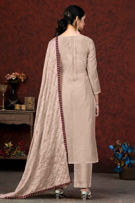 Cream Colour Semi Stitched Chinon Straight Suit VSSM1112776