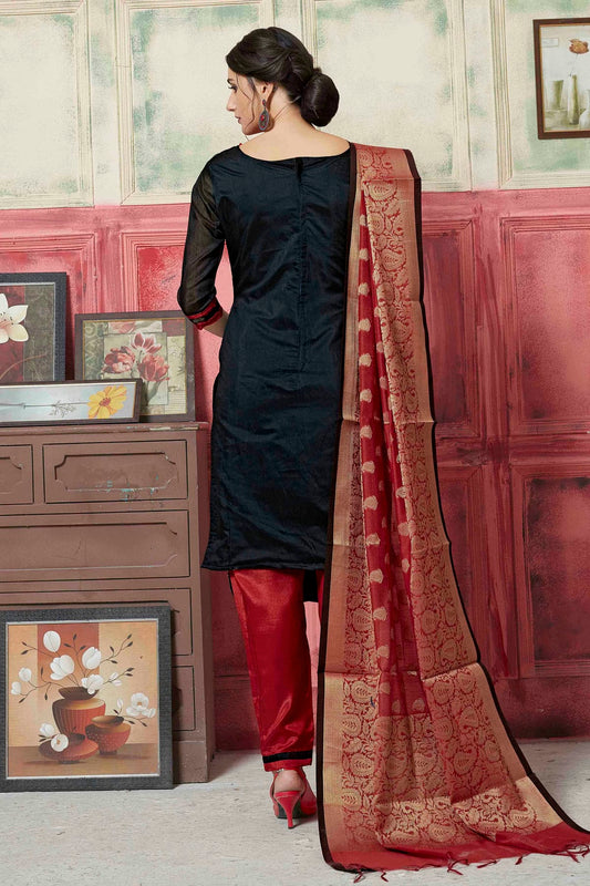 Black Colour Unstitched Banarasi Silk Fabric Straight Suit VSUS1161047