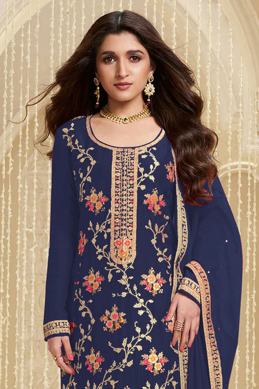 Blue Colour Jacquard Viscose Straight Suit VSSM1140582