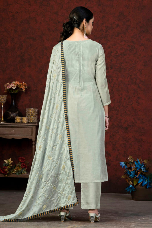 Grey Colour Unstitched Modal Chanderi Fabric Straight Suit VSUS1161059