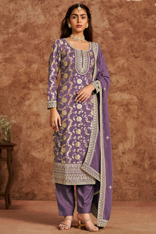 Lavender Colour Dolla Silk Jacquard Straight Suit VSSM1050682
