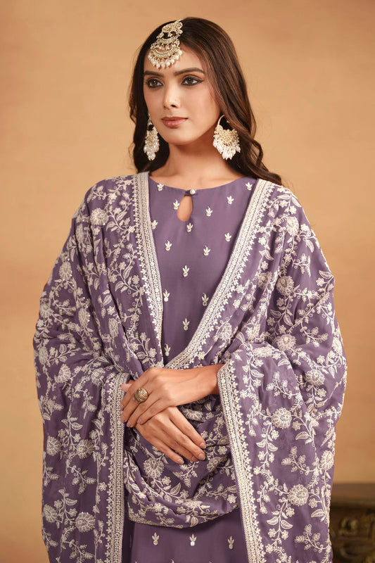 Lavender Colour Straight Suit Faux Georgette Semi Stitched VSSM1050486