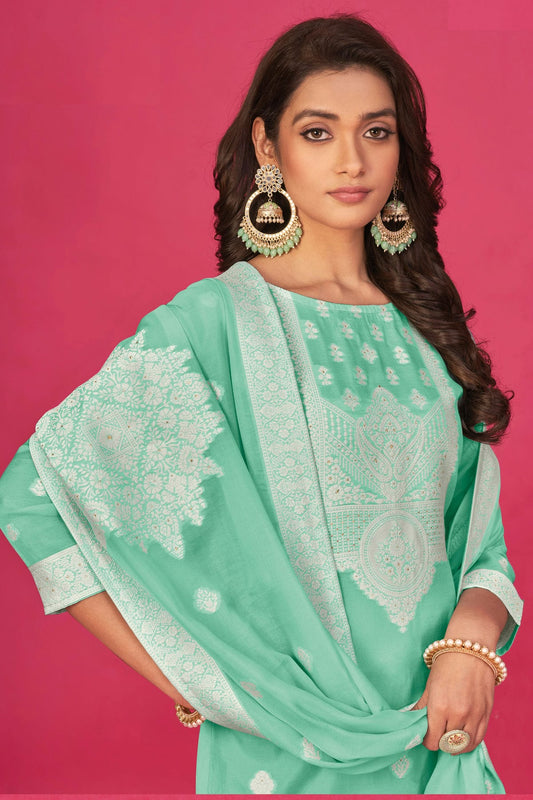 Light Green Colour Semi Stitched Jacquard Straight Suit VSSM1140191