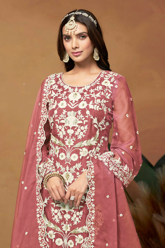 Mauve Colour Straight Suit Soft Organza Semi Stitched VSSM1050502